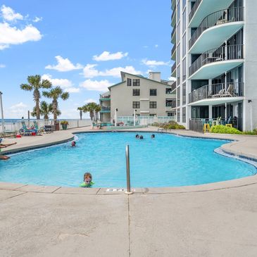 The Watercrest features a large pool, kiddie pool, and hot tub for guests to use.